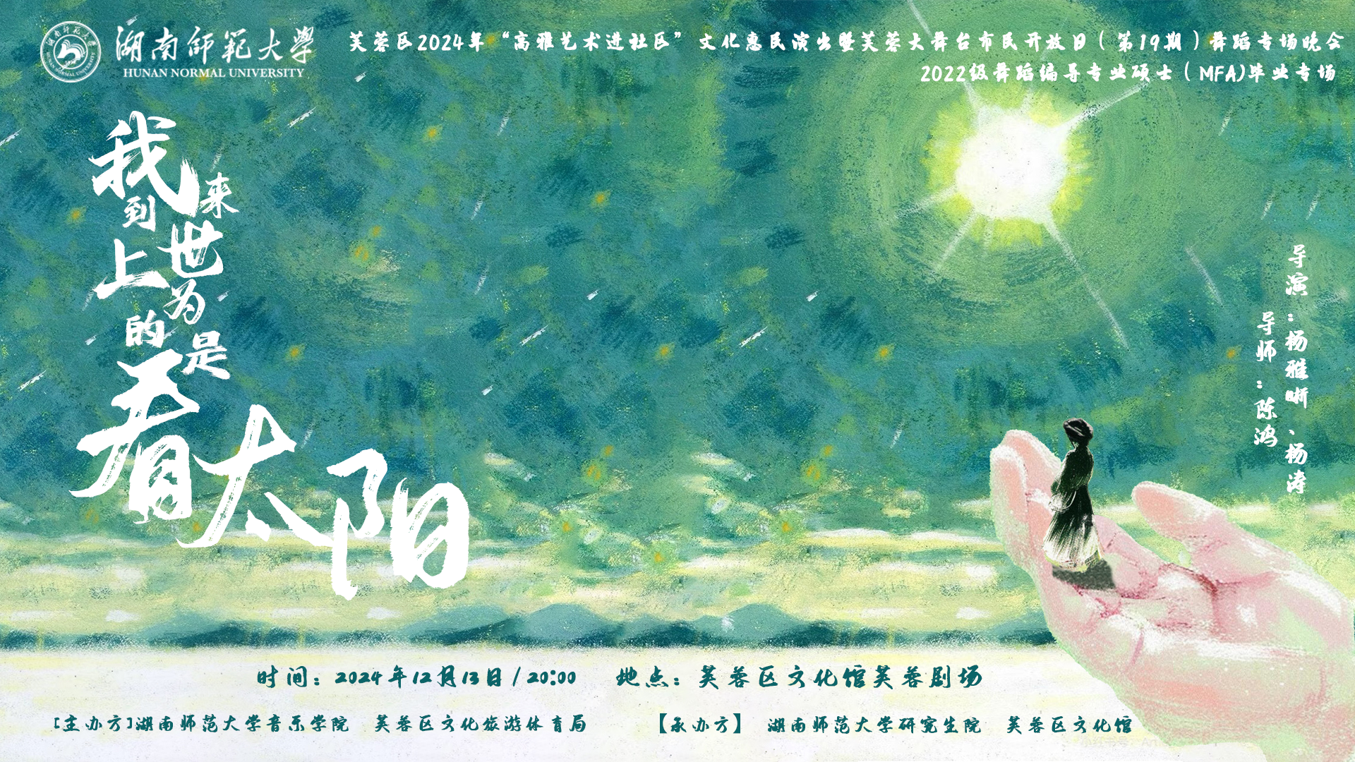 “我来到世上为的是看太阳”—— 芙蓉区2024年“高雅艺术进社区”文化惠民演出暨芙蓉 大舞台市民开放日(第19期)舞蹈专场晚会
